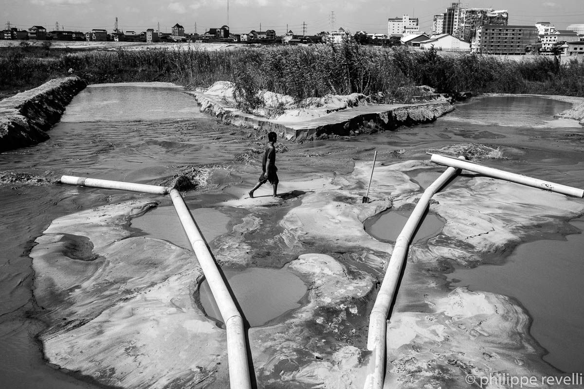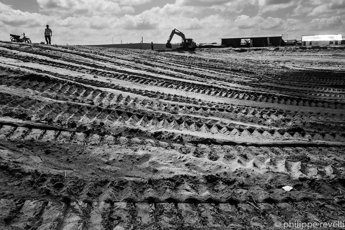 Envahissant, le sable gagne du terrain sur l’eau qui ne cesse de reculer. Et ce n’est qu’un début. A l’horizon 2020 se profile ING City, une ville satellite qui occupera la quasi totalité de l’espace, aujourd’hui inondé, du lac Tampoun. Immeubles d’habitation, locaux commerciaux et industriels… Maître d’œuvre du projet, la compagnie ING Holdings Co Ltd, filiale du groupe AZ, annonce un investissement initial de 696,5 millions de dollars pour la construction d’un vaste complexe résidentiel, commercial et industriel destiné à devenir un nouveau « business hub » au sud de la capitale et offrir un large panel d’opportunités aux investisseurs nationaux ou étrangers. Les promoteurs d’ING City et la municipalité arguent de la forte croissance de la population urbaine (estimée à 2 millions aujourd’hui, la population de Phnom Penh pourrait atteindre les 3 millions à la fin de la décennie), promettent que le projet sera respectueux de l’environnement, que 500 hectares d’espaces aquatiques seront aménagés, que les populations résidant actuellement sur le site se verront proposer des solutions de relogement proches de leur lieu de vie actuel et qu’il n’y aura pas d’expulsions… Quoi qu’il en soit, les premiers travaux n’ont pas suscité de grand mouvement d’opposition, mais les prix du foncier autour du lac Tampoun explosent (Phnom Penh’s land value surged on road announcement / Phnom Penh Post du 02/06/2015) et la spéculation va bon train.