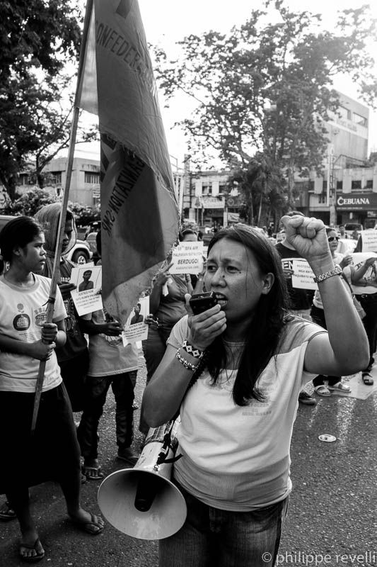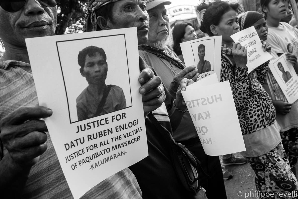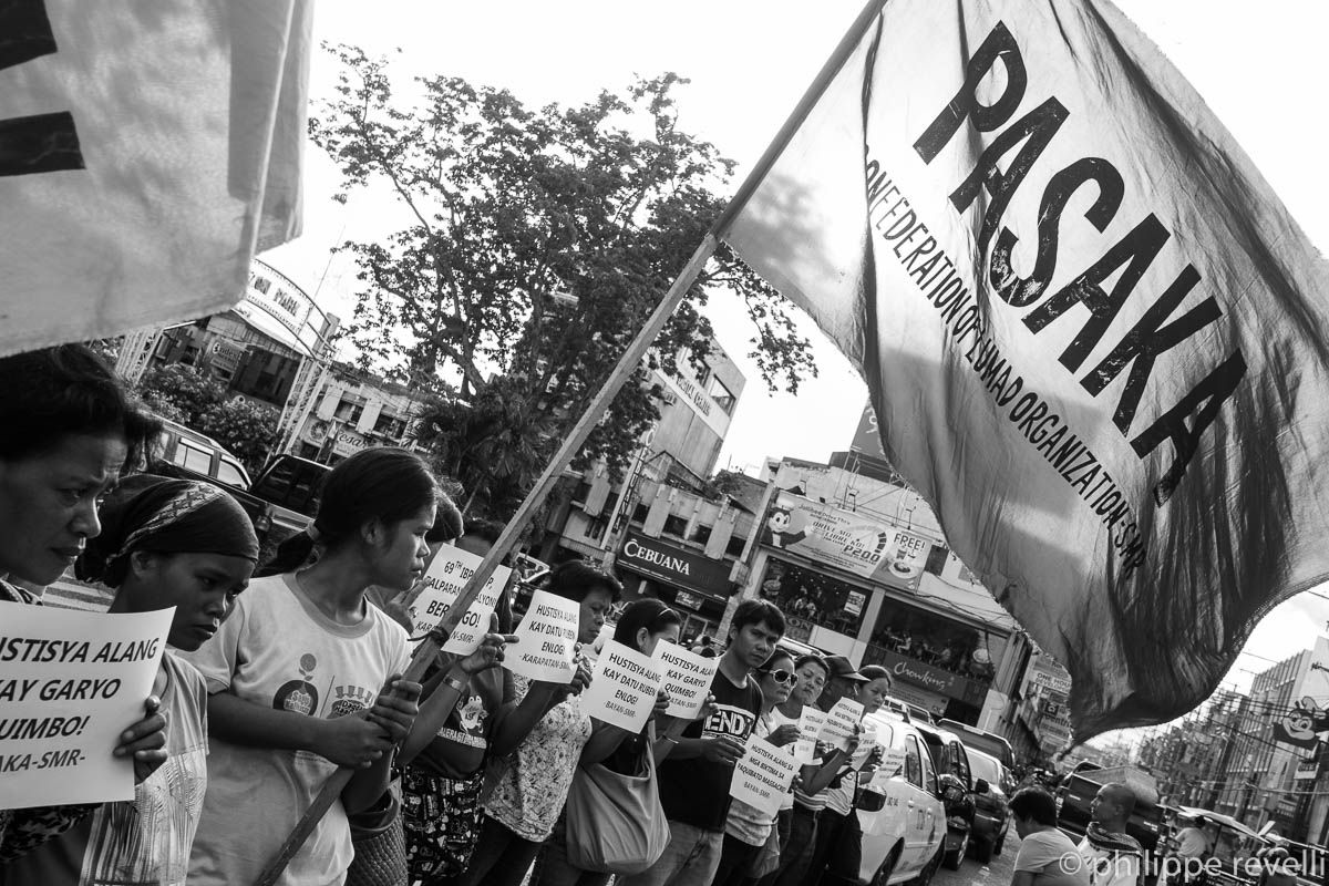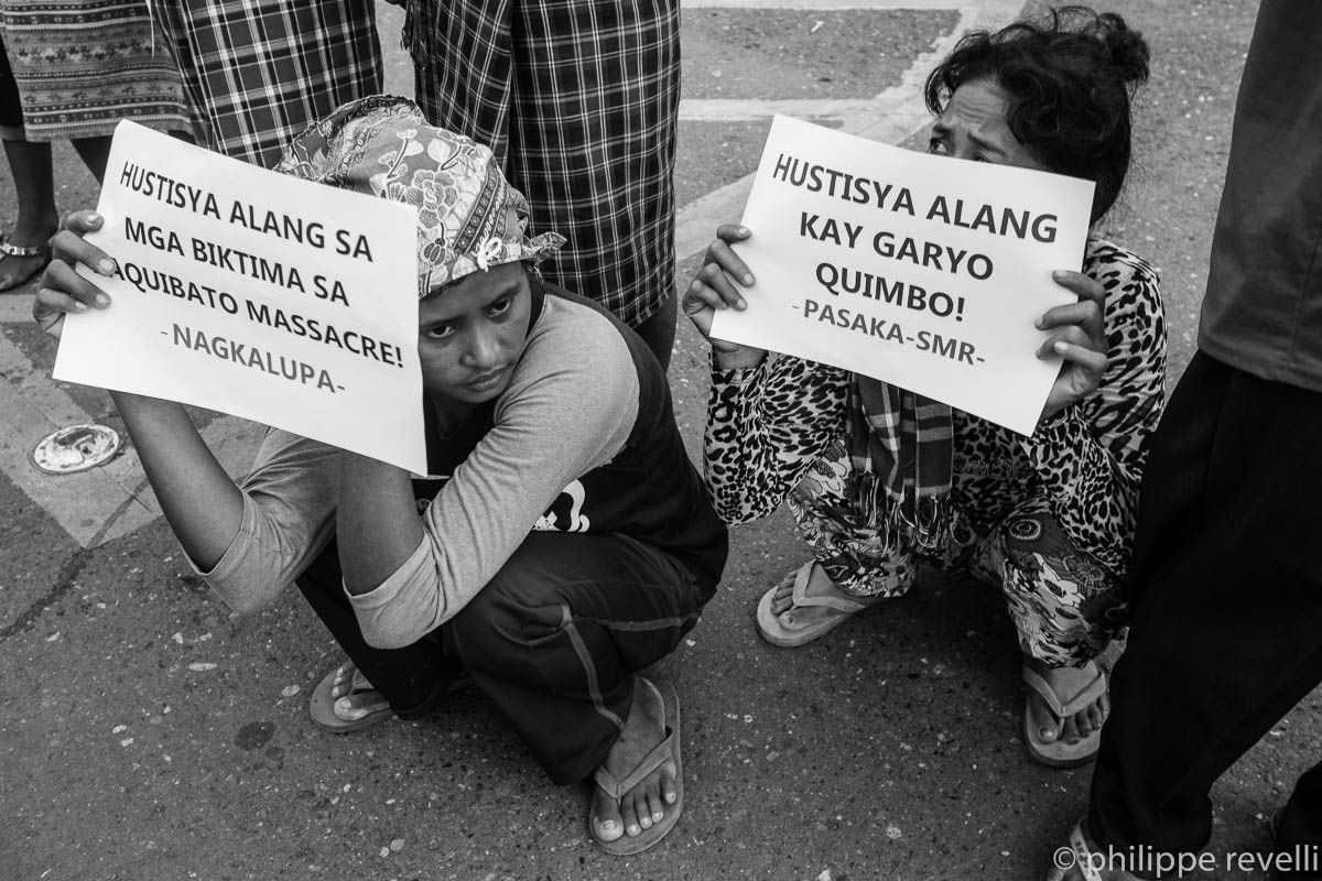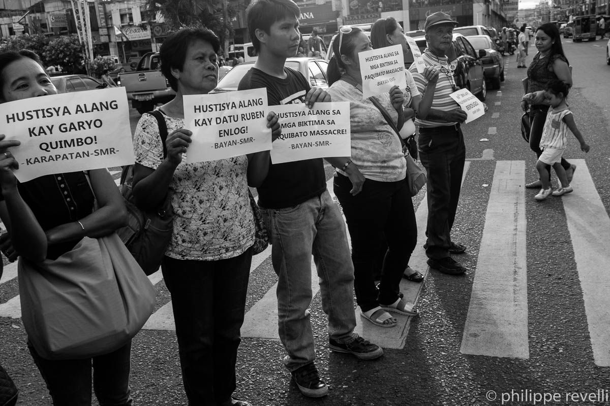 Ce lundi 15 juin, Karapatan et d’autres organisations progressistes appelaient à un rassemblement, devant la mairie de Davao, pour dénoncer le « massacre de Paquibato ». La manifestation était suivie d’une veillée funèbre.