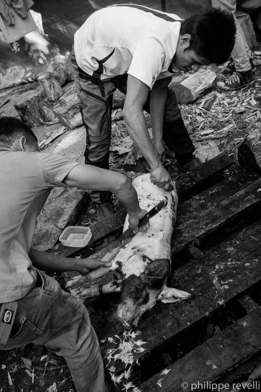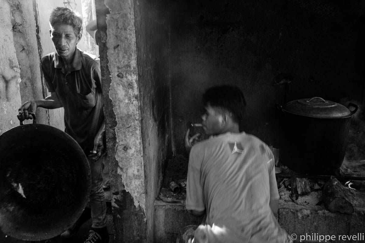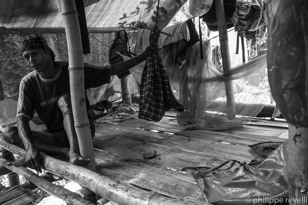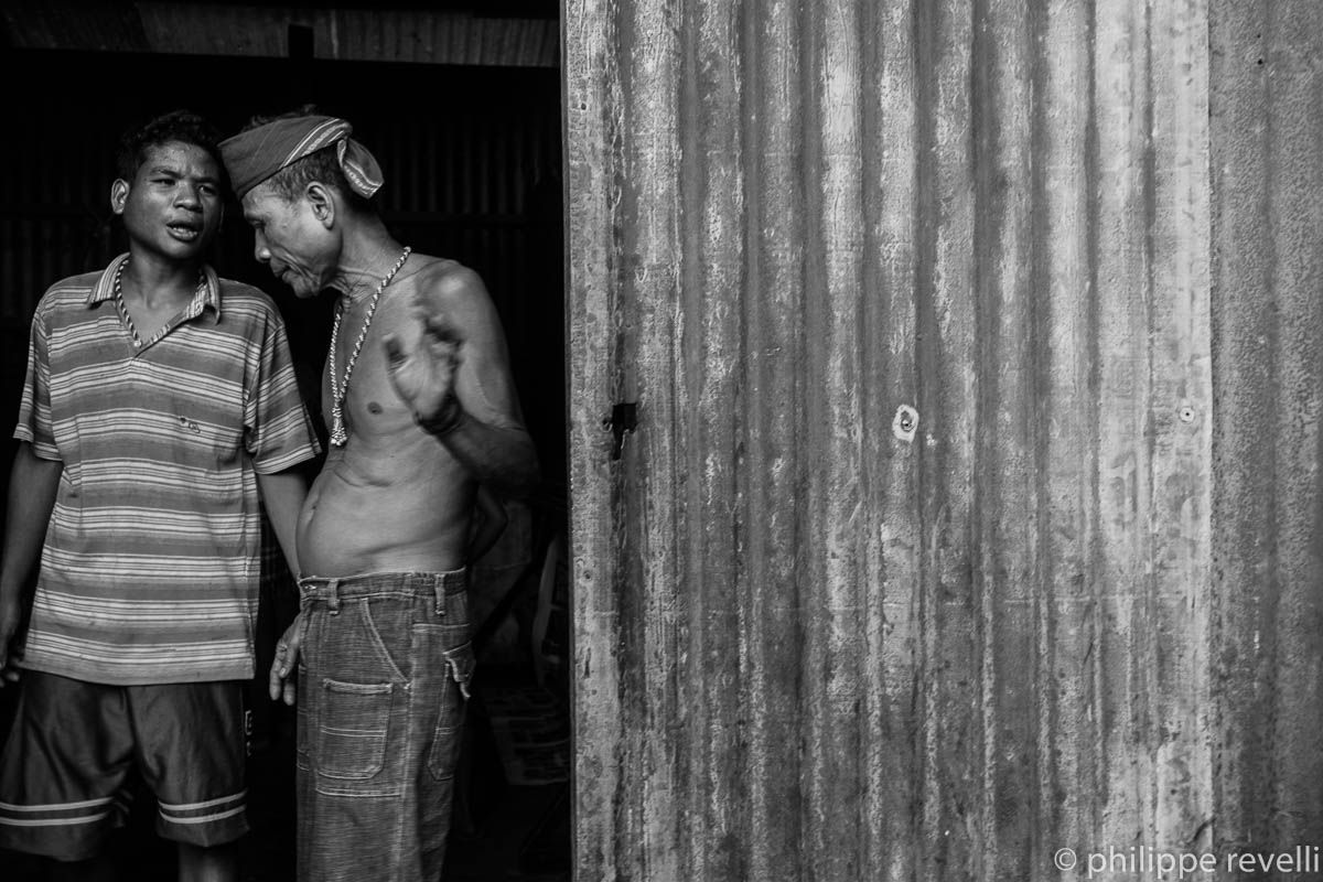 Melvin Bontolan. « J’ai 19 ans. J’habite sitio Natolinan, barangay Palmahil, commune de Talaingod. C’est un hameau très isolé. Pas de jeepney, il faut prendre une moto et ça coûte 300 PHP (environ 6 euros). On cultive du maïs, du riz, on élève des poulets, des porcs. Il y a quelques jours, les militaires se sont installé dans la communauté. Ils entraient dans les maisons, faisaient sortir les habitants, fouillaient partout à la recherche d’armes, accusaient les gens d’être des NPA (guérilleros). Ils disaient que la terre était à eux, que nous n’avions pas de titre de propriété. Ils se sont établi dans l’école. Un matin, ils nous attrapé, mon copain Sammy et moi. Ils nous ont interrogé, nous ont accusé d’être des NPA. Ils ont tabassé Sammy. Moi, j’ai réussi à filer. Après ça, on a décidé de quitter le village. On a pris une moto jusqu’à Talaingod. On voulait dénoncer ce qui s’était passé, mais la police a refusé d’enregistrer notre plainte. On a continué jusqu’à Kapalong, et de là on a pris un bus pour Davao ».