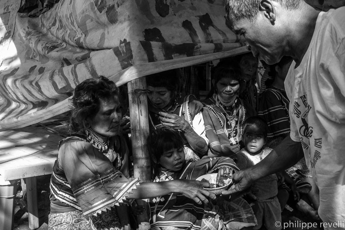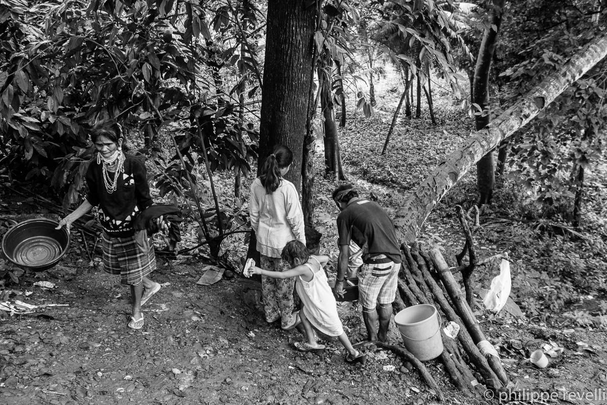 Datu Doloman. « Je suis le Datu (leader) de Salugpungan, commune de Talaingod. Ce n’est pas la première fois que l’armée s’attaque aux lumads (indigènes). En 1994, nous avions mené une guerre avec des arcs et des flèches contre une compagnie forestière étrangère et beaucoup d’entre nous avaient été tués par les militaires. Quand la pression de l’armée augmente, on peut être sûr qu’il y a quelque chose derrière : des compagnies bananières qui veulent étendre leurs plantations ou des société minières qui en veulent à nos ressources minérales. L’an dernier (avril 2014) nous avions déjà abandonné dos villages pour nous réfugier à Davao. Un millier de familles. C’était aussi une façon de protester contre la militarisation des communautés. Nous avions passé un mois à l’UCCP Haran. Finalement, une rencontre avait été organisée avec le maire de Davao et les chefs de l’armée. Ils avaient accepté de retirer les soldats de nos villages et nous étions rentré chez nous. Mais le répit n’a pas duré longtemps ».