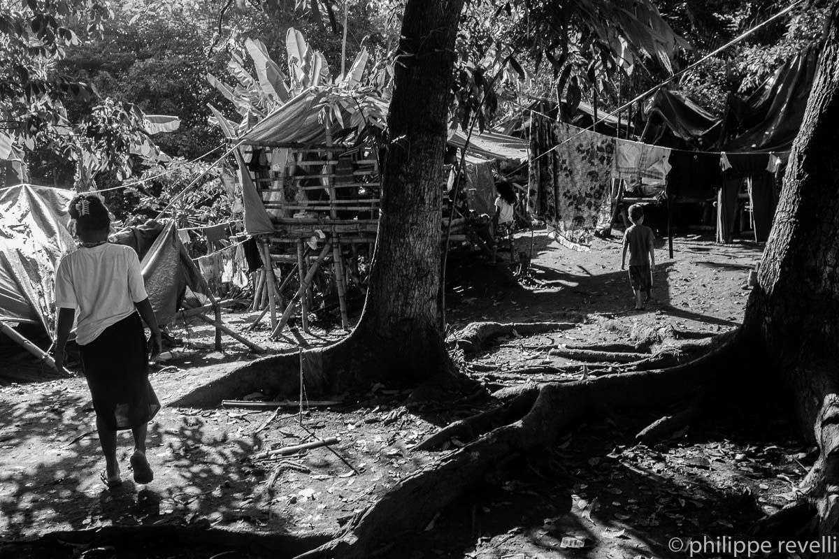 Un peu plus d’une centaine il y a deux semaines, ils sont aujourd’hui près de quatre cents indigènes manobos, hébergés sur le campus de l’UCCP Haran de Davao, et chaque jour amène son lot de nouveaux réfugiés fuyant leur village pour échapper aux harcèlement dont ils sont victimes de la part de l’armée et des groupes paramilitaires.
