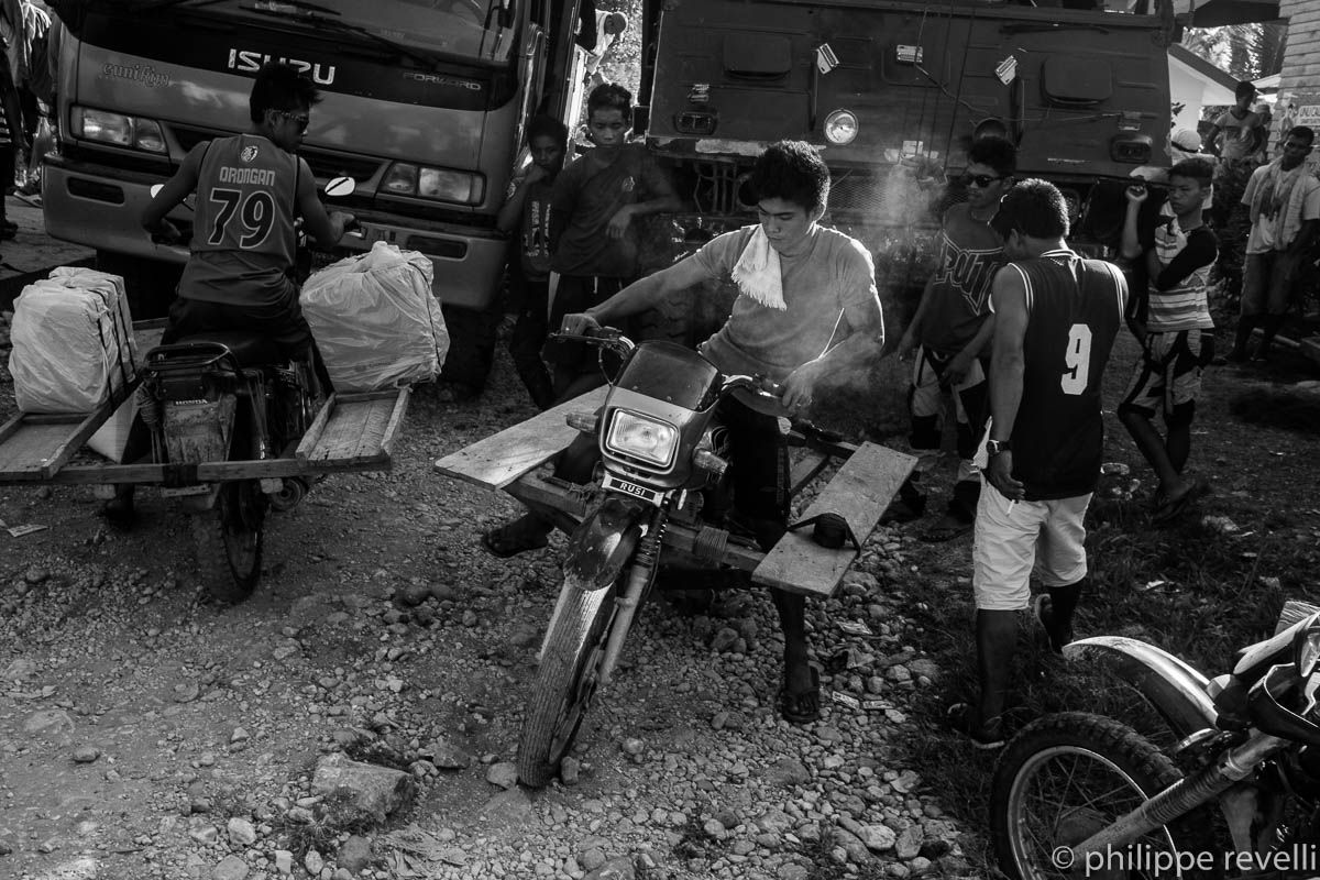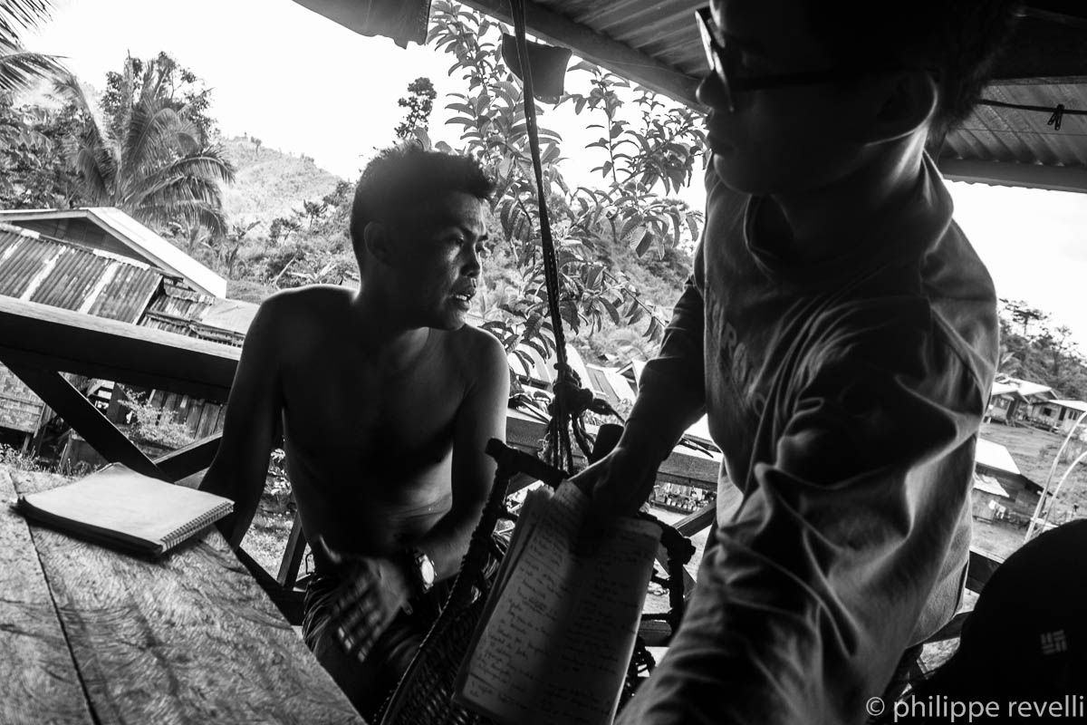 Mardi 2 juin. Barangay Mahan-Ub. Avons passé la nuit sur place. Le camion est là. Mais l’arrestation de l’auxiliaire de santé bouscule le programme. Le conducteur de la moto sur laquelle voyageait Jonathan nous a rejoint. Il raconte : « Il était environ 18h30 quand nous sommes arrivé au check-point de Binondo. Il est tenu par le 67ème Bataillon. Les militaires nous ont fait descendre de moto et interrogé séparément. L’interrogatoire de Jonathan a duré plusieurs heures. Ils l’accusaient d’être un NPA. Le lendemain matin, nous avons été transférés au 61ème Bataillon. J’ai déclaré que je ne connaissait pas mon client et il m’ont relâché. Jonathan, ils l’ont gardé. Il est incarcéré à Mati (extrême sud de la province) ».