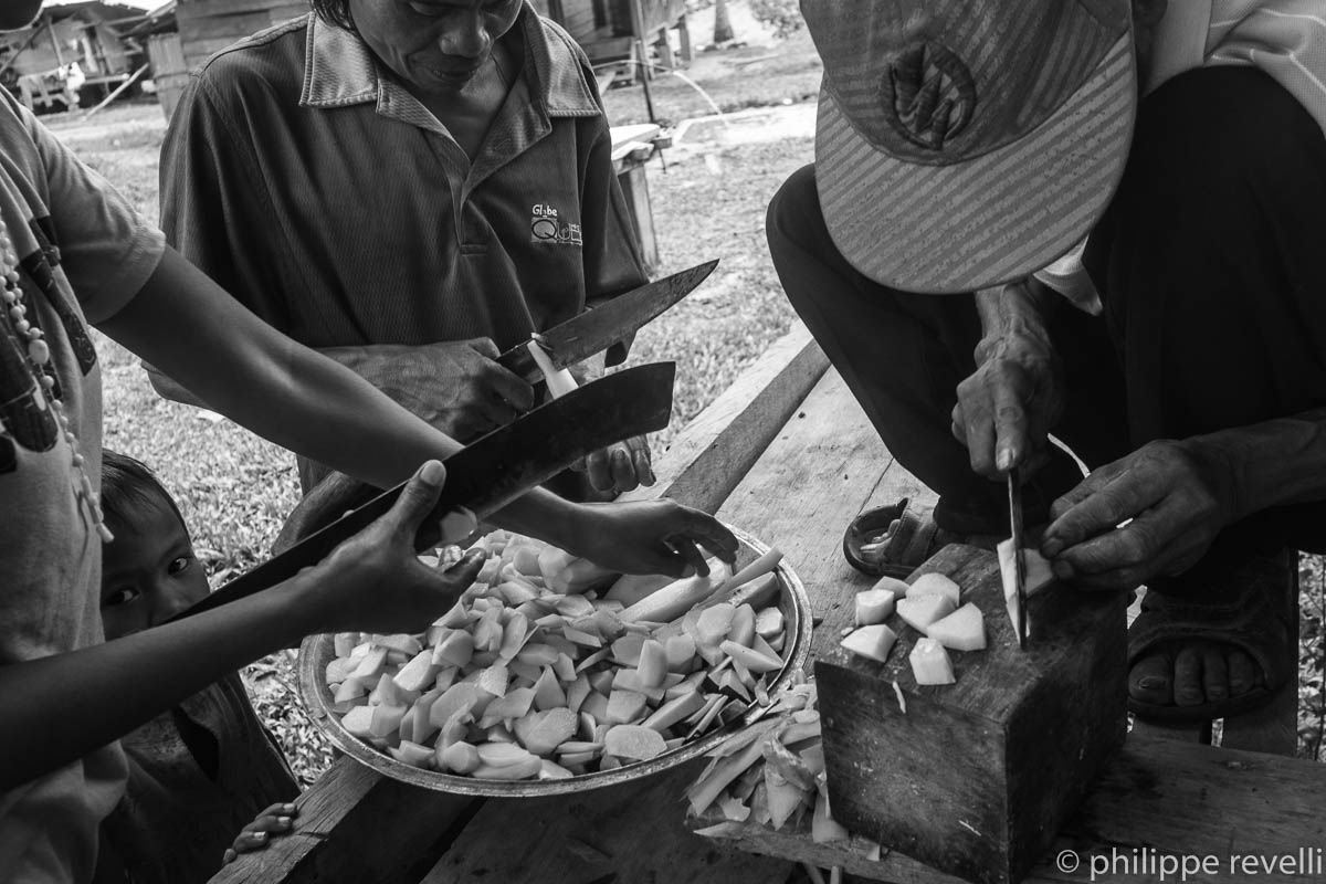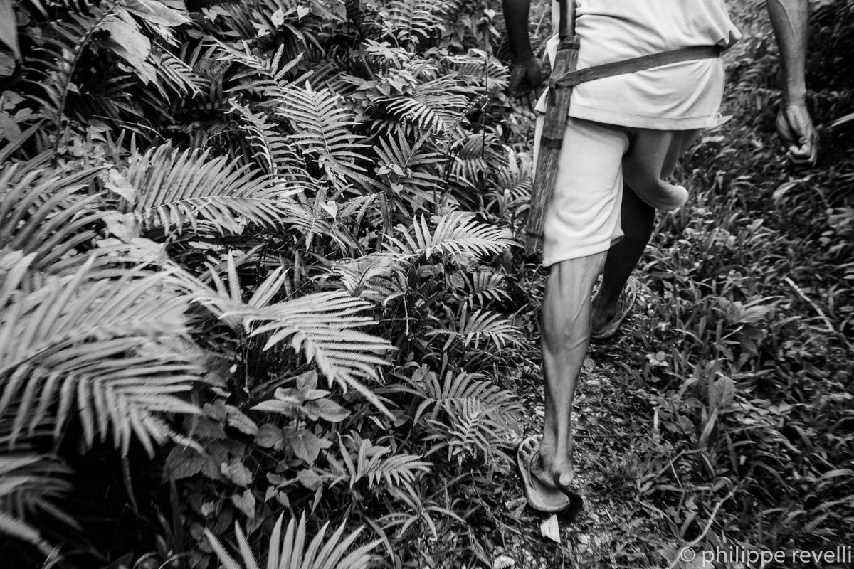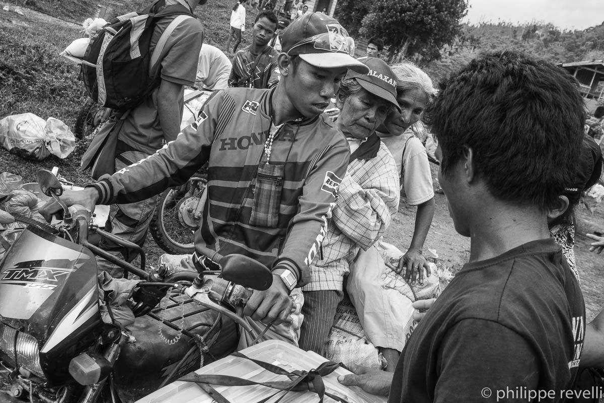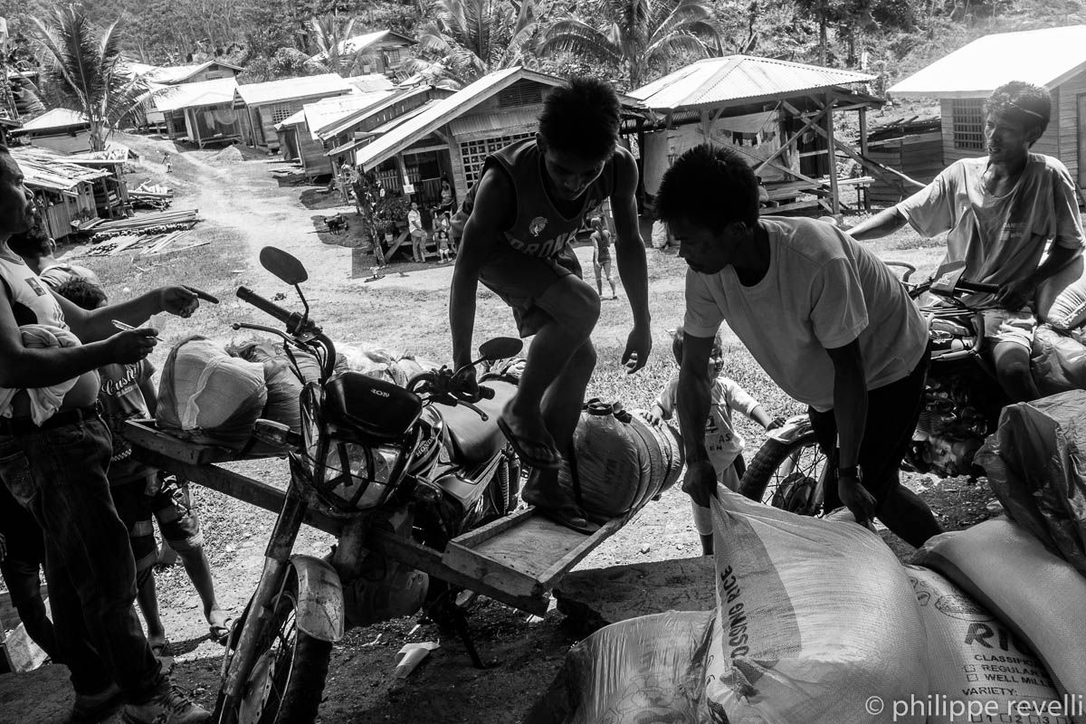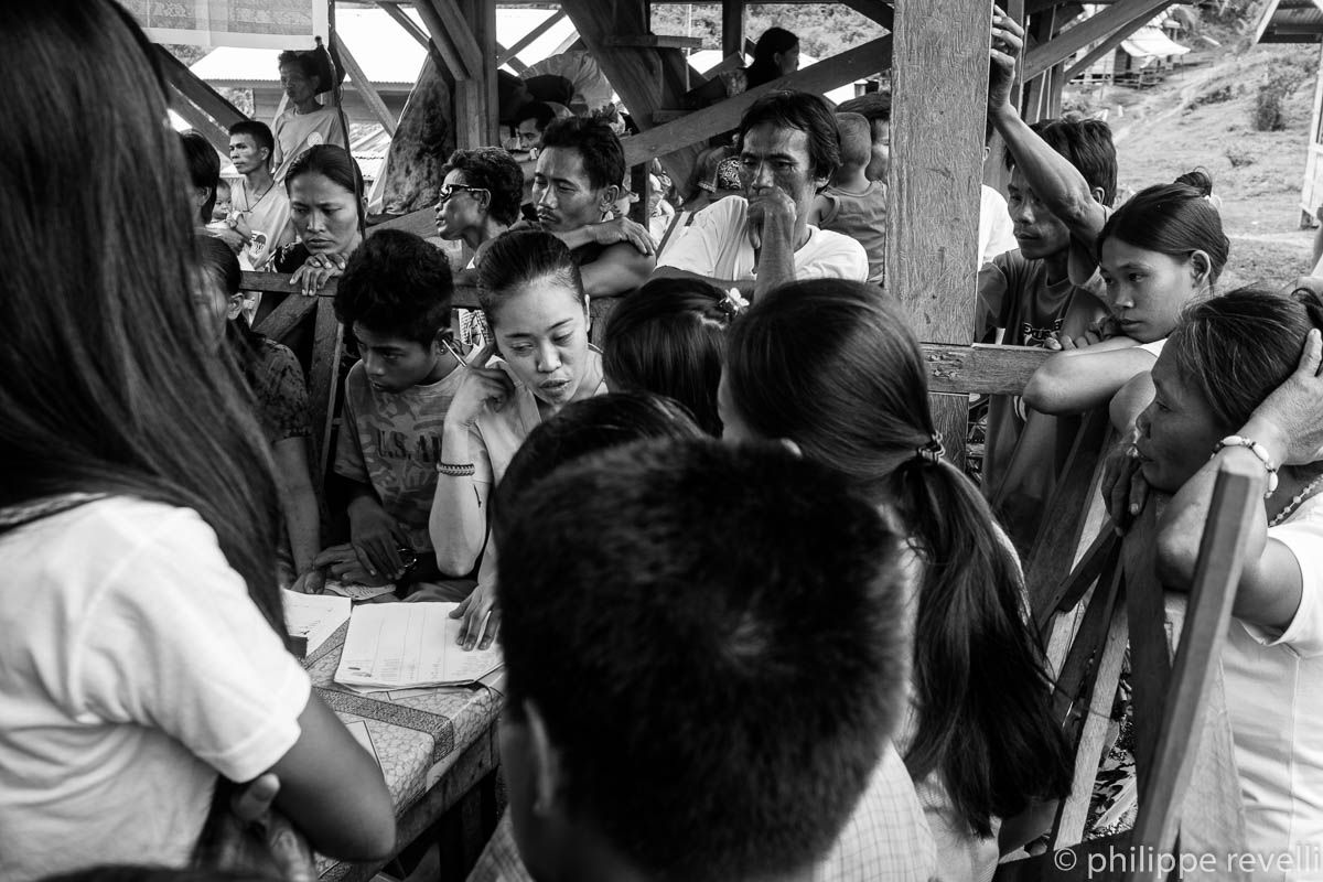 Dimanche 31 juin. Le chemin de Kasunugan est impraticable en camion. Des motos bricolées prennent le relais. Les passagers d’abord, puis les sacs de riz. En milieu de matinée, nous sommes à pied d’œuvre. Accueil. Célébration religieuse. Prises de parole. Une dirigeante de la Farmer Association of Compostela conte la lutte des paysans de Compostela contre l’Agusan Petroleum & Minerals Compagny, met en garde les habitants de Kasunugan contre les dangers de l’exploitation minière à grande échelle. Même si la communauté ne semble pas être la cible d’un quelconque projet minier ou agroindustriel, elle n’en reste pas moins vulnérable : la demande présentée récemment au National Commission on Indigenous People en vue d’être reconnue comme communauté indigène et le territoire de Kasunugan enregistré comme « domaine ancestral » n’a, pour l’instant, obtenu aucune réponse des autorités compétentes. Aujourd’hui, la population du hameau n’a donc légalement aucun droit sur les terres qu’elle habite et cultive.