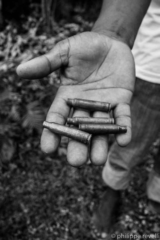 En début d’après-midi, la mission se met au boulot. Consultations médicales et soins légers, distribution de riz, activités récréatives pour les enfants, entrevues et collecte d’informations sur d’éventuelles violations des droits humains et l’état du conflit armé. Une récente attaque de la guérilla retient l’attention : jeudi 28 mai, c’est la fête à Kasunugan. Des militaires du 67ème Bataillon cantonnés au sitio Kaputian, à une heure de marche de là, se sont invité. Tard dans la nuit, sur le chemin du retour, ils tombent dans une embuscade tendue par les guérilleros de la NPA. Deux soldats son tués. Les habitants de Kasunugan sont aussitôt accusés d’avoir informé la guérilla. Ils craignent des représailles. La famille qui habitait près du lieu de l’escarmouche a abandonné sa maison. A l’emplacement où les soldats sont tombés, le sol a été brûlé : pratique rituelle pour éviter que le sang des victimes soit récupéré par les esprits.