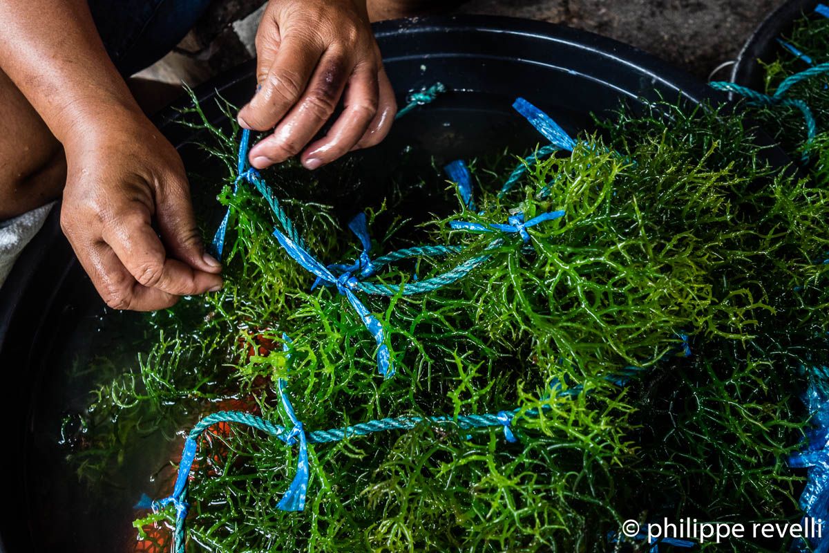 – Une communauté de pêcheurs artisanaux de General Santos (île de Mindanao) qui pratique la culture des algues rouges (qui sont vertes en surface).