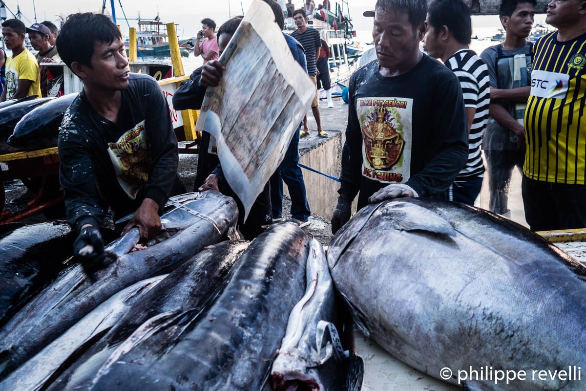 – Le débarquement, la pesée et le triage des thons au port de pêche industrielle de General Santos (en 2007, j’avais réalisé un premier reportage photo sur la pêche à General Santos).