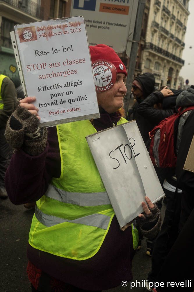 D’autres l’ont compris : travailleurs sociaux, de la santé, enseignants, sans papiers, cégétistes, solidaires… qui étaient présents et bien présents, ce jour, dans le cortège des gilets jaunes.