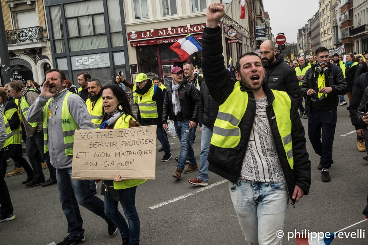 La surdité du gouvernement aux revendications des gilets jaunes (mais aussi des défenseurs du climat, des lycéens, des enseignants, des syndicalistes), son mépris affiché pour les gueux, ses manœuvres juridico-policières pour restreindre le droit de manifester portent leurs fruits, amers : jamais encore, je n’avais entendu les manifestants scander « Les Black Blocs avec nous », et bien c’est fait. Avec ça des vitrines brisées, taguées : banques, compagnies d’assurance, panneaux publicitaires, agences d’intérim… les cibles n’étaient choisies au hasard et personne n’a cherché à s’interposer ou dissuader les vandales. Qui sème la misère récolte la colère. Et si, dans notre lacrymocratie de marché, faire peur aux nantis reste le seul moyen de se faire entendre, les Blacks Blocs deviendront le bras armé d’une contestation populaire qui s’obstine à battre le pavé tant qu’il est chaud.