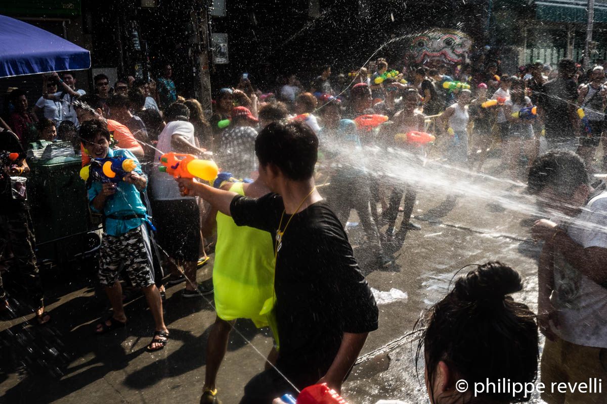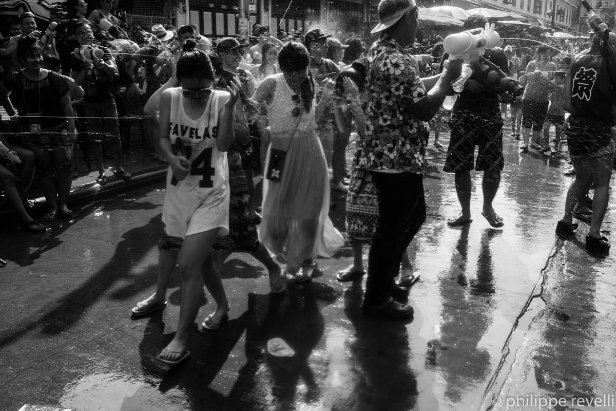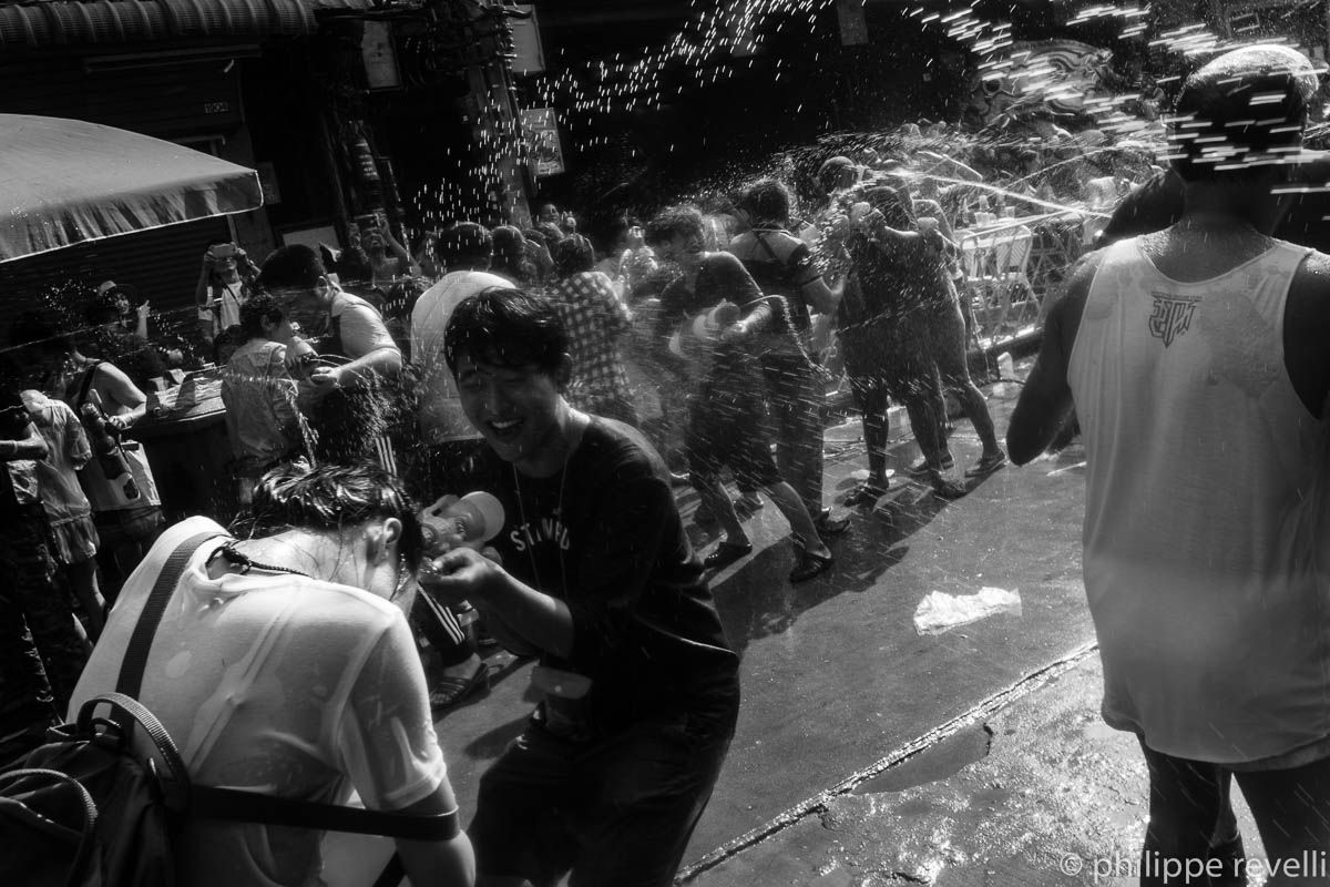 Bangkok / Khaosan Road. Bataille d'eau à l'occasion de Songkran, le nouvel an thaï.