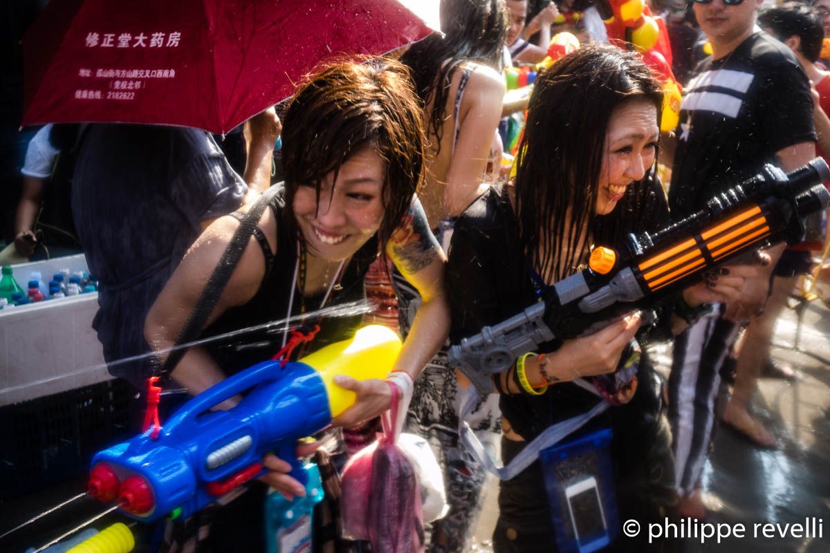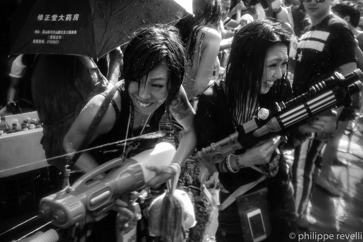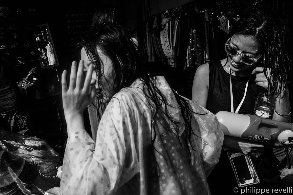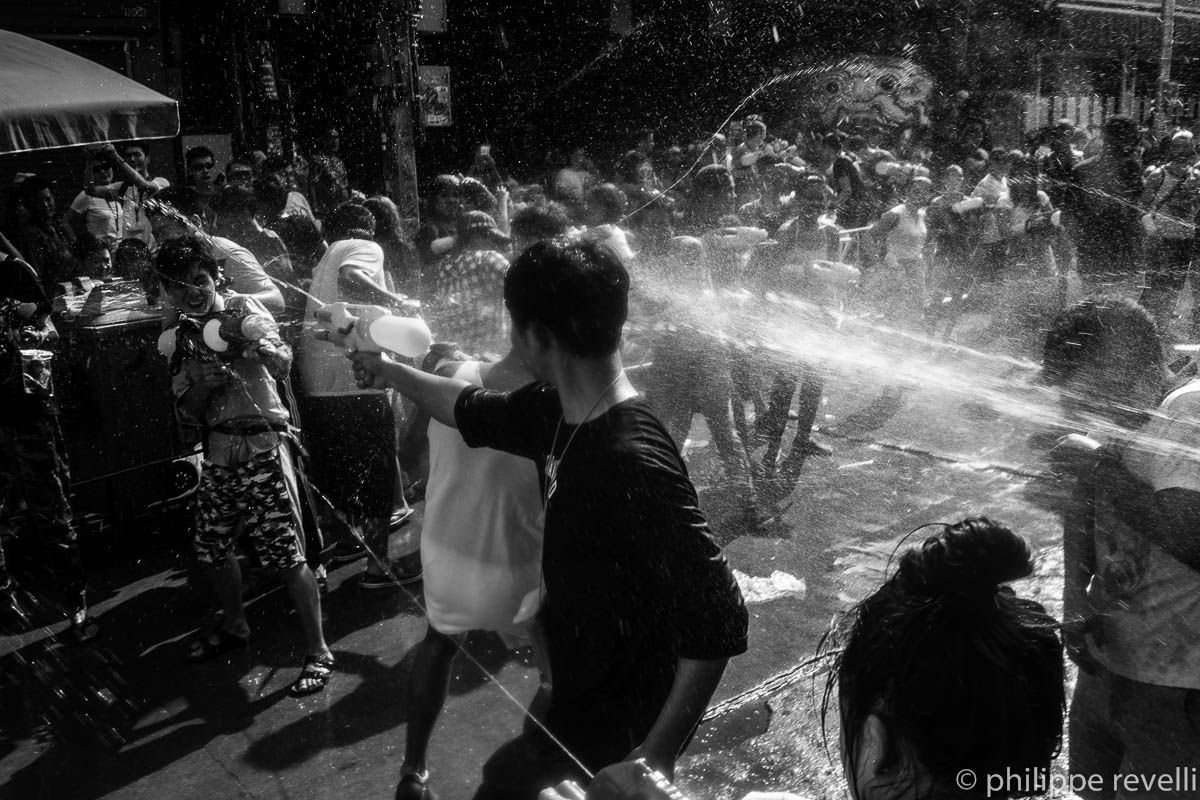 Bangkok / Khaosan Road. Bataille d'eau à l'occasion de Songkran, le nouvel an thaï.