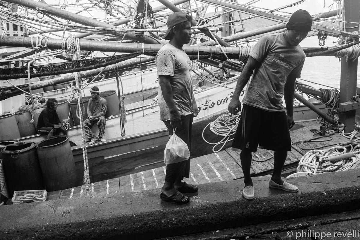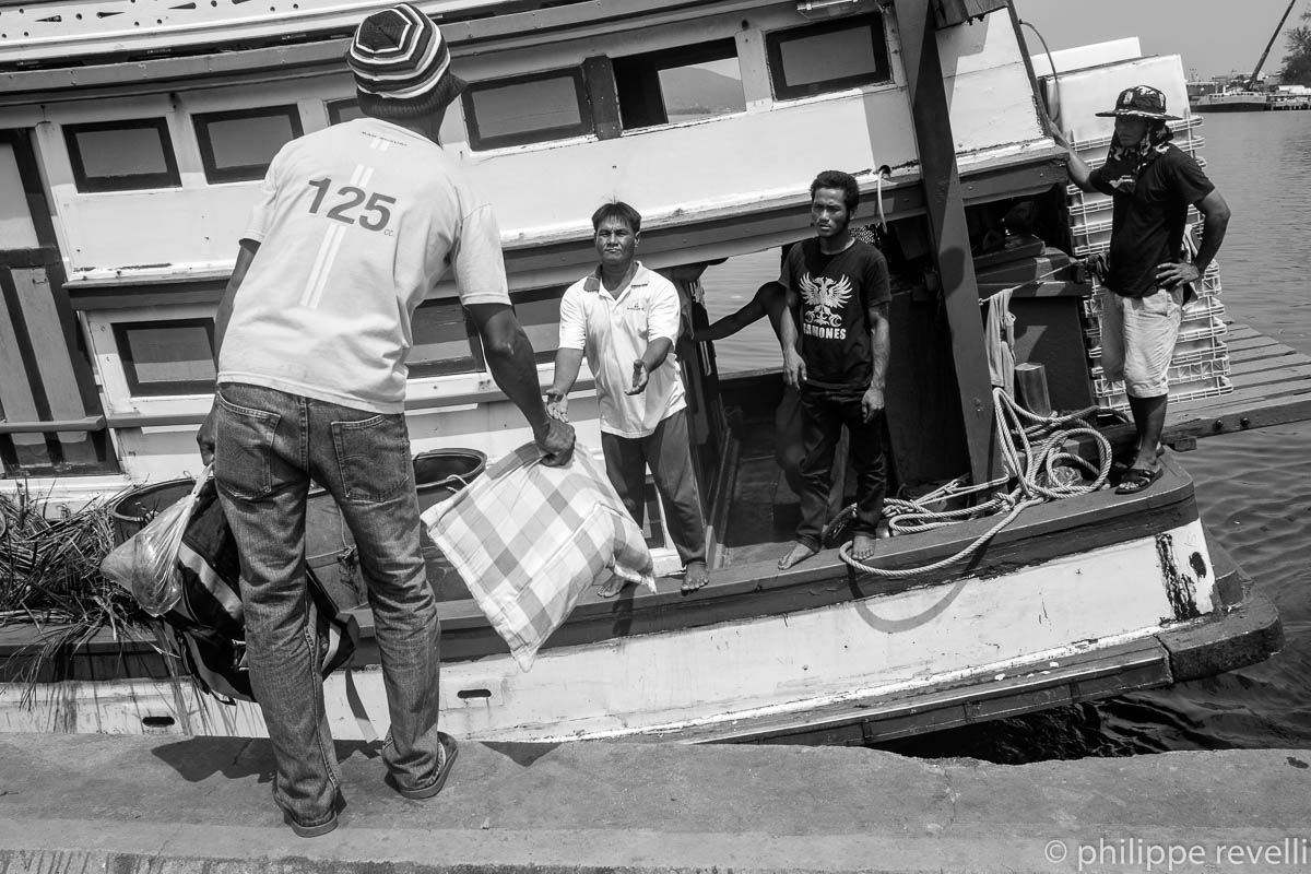 Songkhla / Port de pêche. Un marin retardataire embarque au dernier moment.