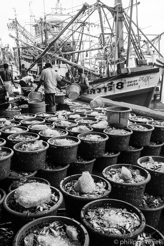 Songkhla / Port de pêche. Déchargement de prises secondaires.