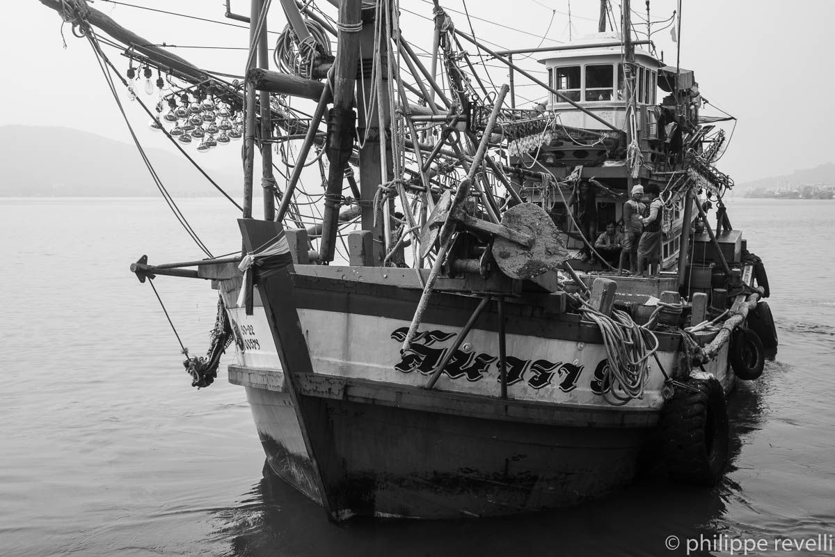 Songkhla / Port de pêche. Un bateau de pêche appareille.