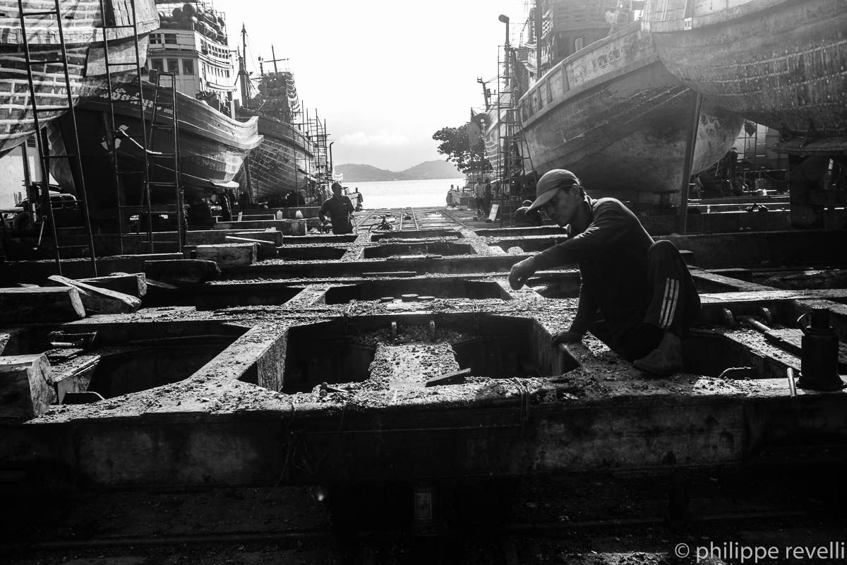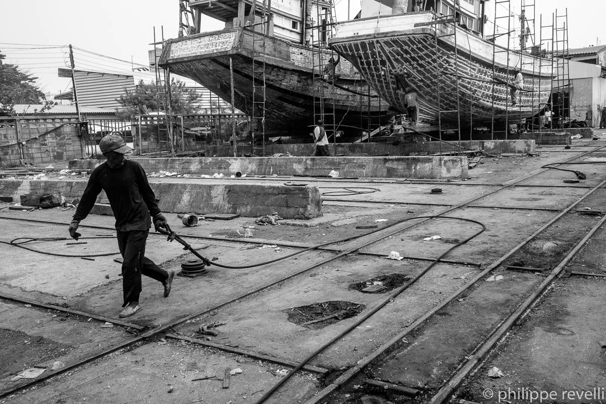Songkhla / Port de pêche. Réparation et entretien du matériel entre deux campagnes de pêche.
