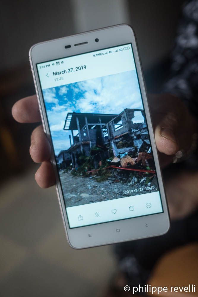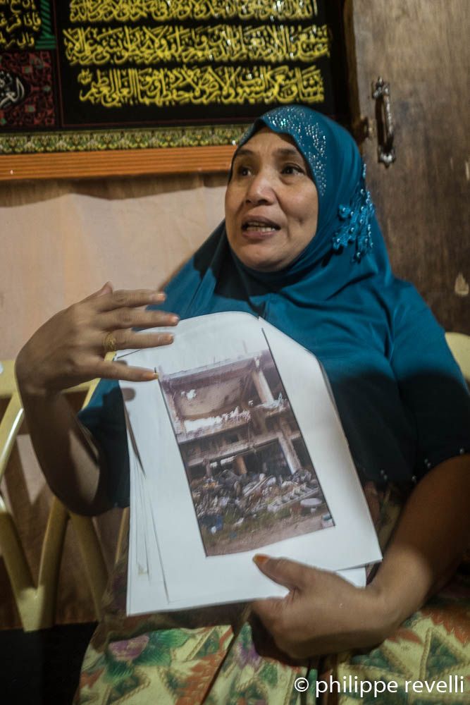 Cadidja Magandoga (docteur). De nombreux réfugiés résident dans une rue bordée de maison basses du barangay Tambacan. Les déplacés de Marawi y sont hébergés chez des parents, des amis ou, parfois, louent un appartement. C’est le cas du docteur Cadidja Magandoga. Dans un anglais impeccable (bien meilleur que le mien mais ce n’est pas un critère), elle raconte qu’au moment de la prise de Marawi elle se trouvait en Arabie Saoudite et, bien plus tard, quand elle a pu retourner sur les lieux, elle n’a retrouvé de sa maison que les ruines : « tenez, regardez la photo », dit-elle en me tendant son téléphone portable. Bien sûr, elle a déposé un dossier de demande de relogement, mais sur le sujet, son témoignage recoupe celui de nombre d’autres réfugiés : le clientélisme le plus éhonté préside à l’attribution de ceux-ci. « Des fonds importants ont été attribués à la reconstruction, où sont-ils passés ? Comment se fait-il que, près de deux ans après la fin des combats, la reconstruction n’en soit qu’à ses premiers balbutiements ? Alors que la nouvelle loi créant la Région autonome du Bangsamoro en Mindanao musulman vient d’être plébiscité, dit-elle, cela augure mal de l’avenir de celle-ci. La reconstruction de Marawi devrait être un exemple, au lieu de quoi on y observe déjà toutes les vieilles tares et la corruption qui ont gangréné l’ARMM ». La docteur Magandoga veut quand même espérer qu’avec l’entrée en fonction de la nouvelle administration les choses vont bouger pour le mieux et pas pour le pire, mais…